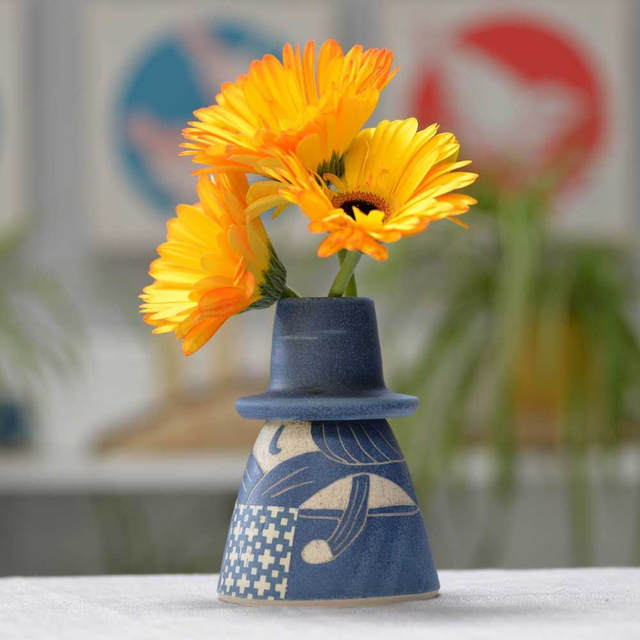 Handmade ceramic Welsh lady bud vases, perfect for daffodils.